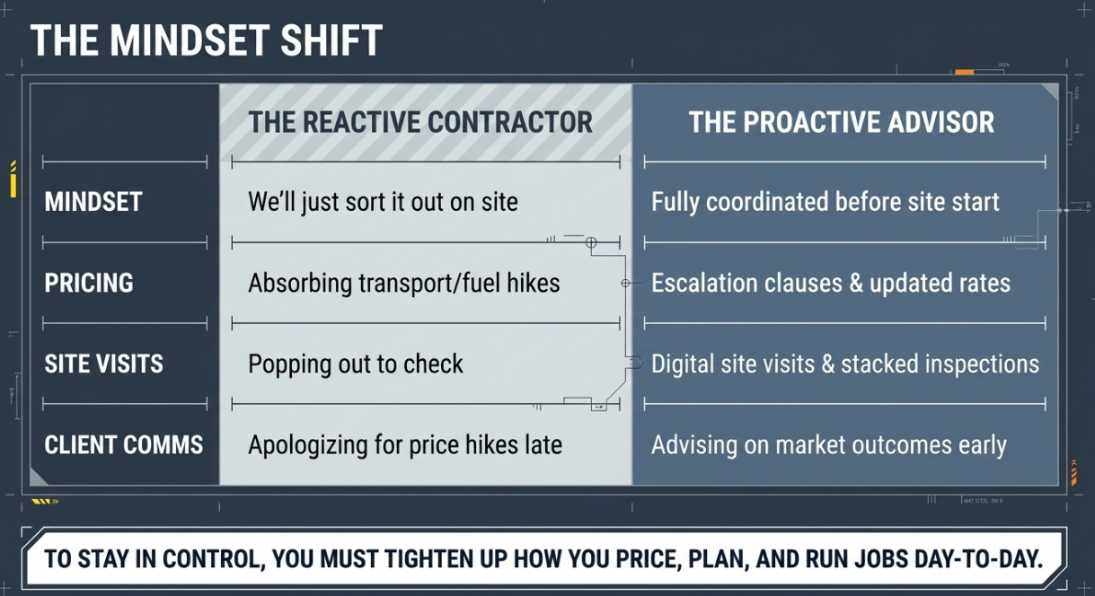 sure we’ve got certainty on your pricing so we can manage the job properly. If there are areas where costs could move, like transport or materials, let’s